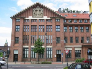 Speicherhausarchitektur auf. Das Zentrallager im hinteren Teil
